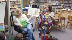 Four elementary schools out in Shrewsbury Mass are enjoying our Storybook Quilts for a month. One school had them for one week last year and the word got out. The librarian’s, art teachers and classrooms teachers are thrilled to be using them in their curriculum. So talk to your children, grandchildren, local schools and libraries. These are great treasures we have made and own, and a wonderful way to pass the world of quilting on to our future generations. Pictured is second grader Emily Beers, granddaughter of Gail Wozniak.